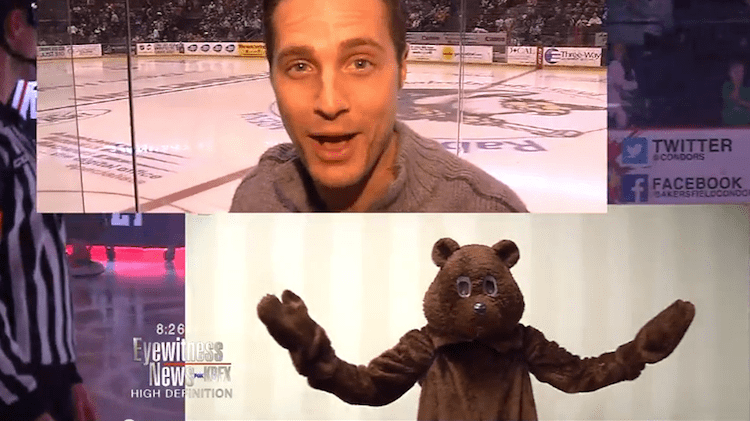 Eyewitness News reporter Josh Helmuth was selected to drop the honorary puck at the start of the Bakersfield Condors’ “Teddy Bear Toss” night on Saturday. He also decided to be the unofficial mascot of the event by dressing up as a Teddy Bear himself. Could he be in two places at once? Watch to find out.